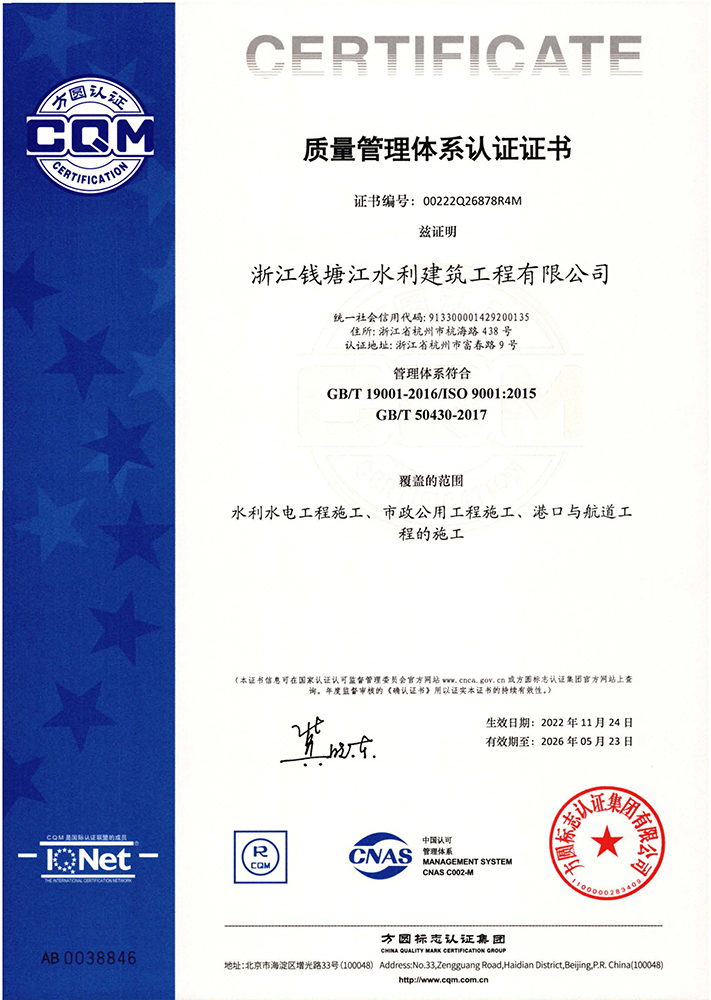 質(zhì)量管理體系認(rèn)證證書