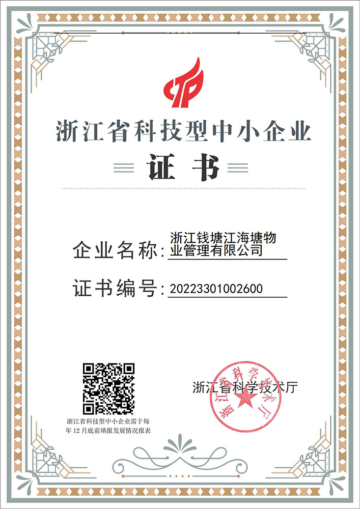 省科技型中小企業(yè)證書-海塘物業(yè)