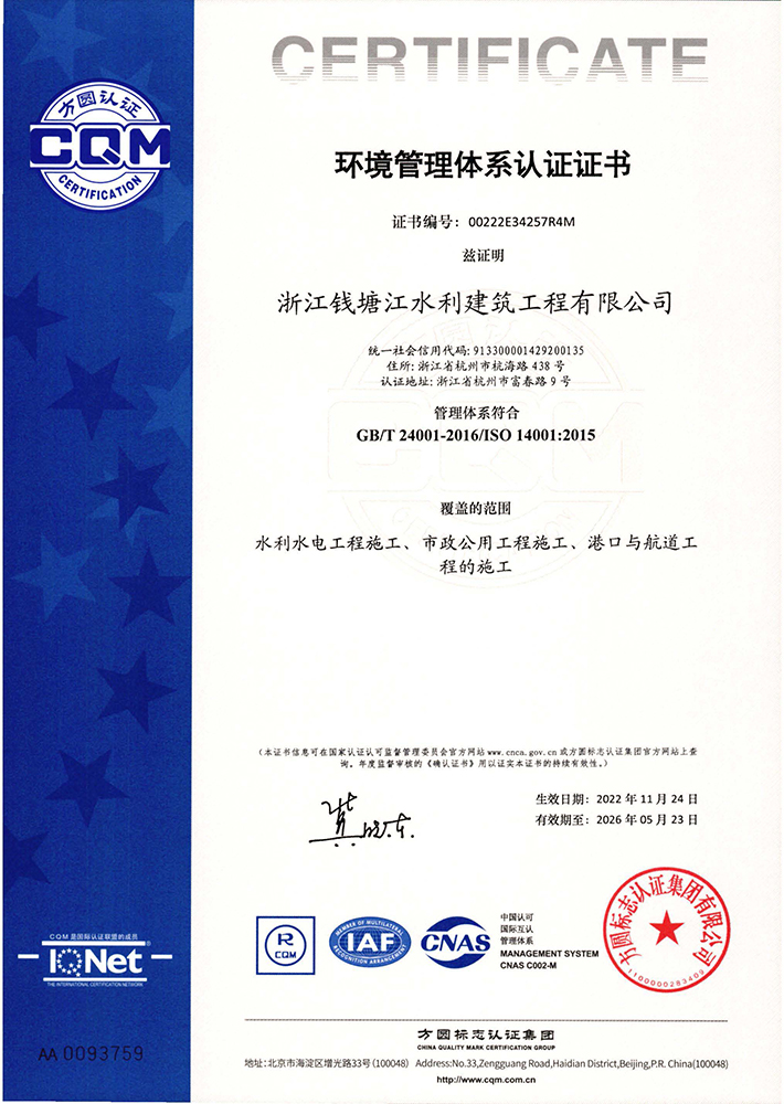 環(huán)境管理體系認(rèn)證證書